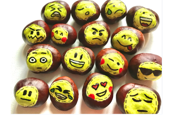 Część uczniów z klas 1-3 przygotowała EmoKasztany - kasztany z narysowanymi sympatycznymi emotkami i wymieniały się między sobą oraz między innymi klasami.