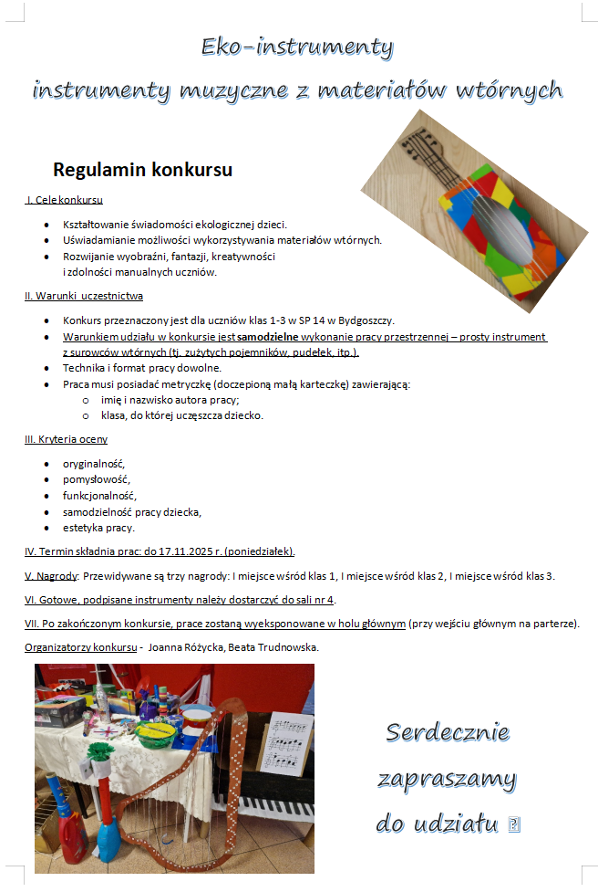 KONKURS Eko-instrumenty - instrumenty muzyczne z materiałów wtórnych