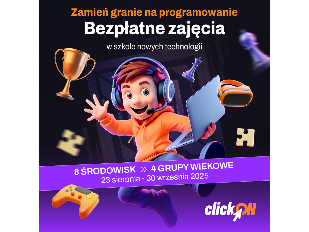● Zapisz dziecko na darmowe zajęcia clickON - zamień granie na programowanie!