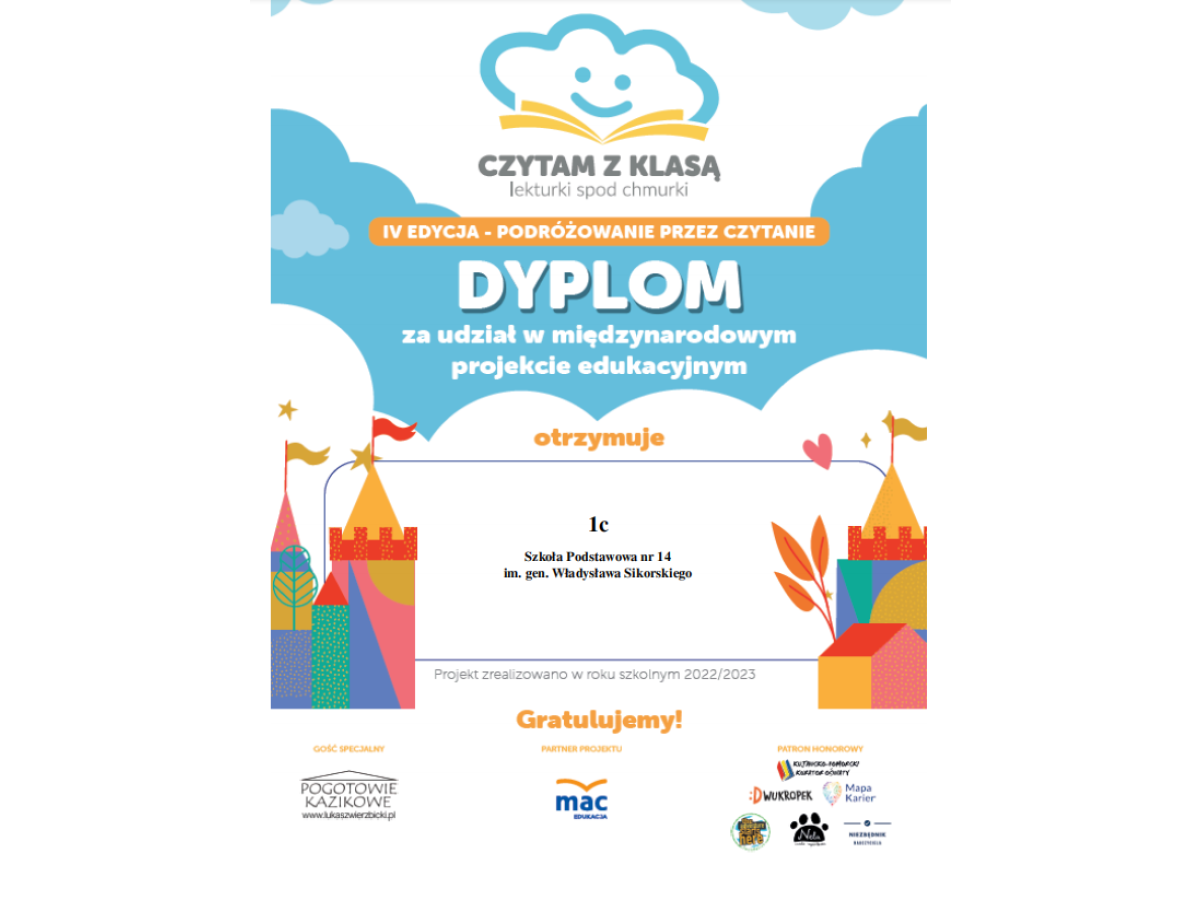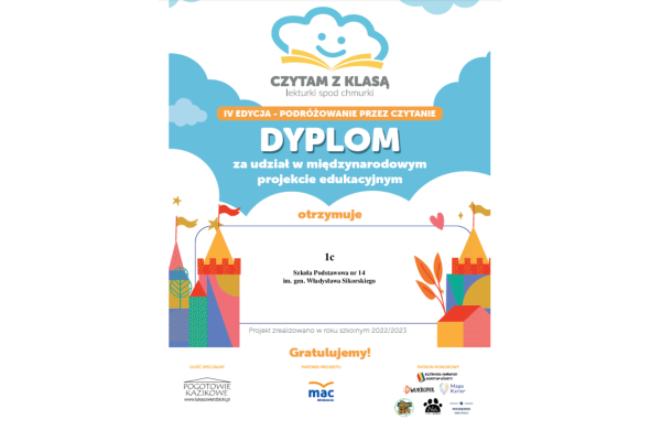 Klasa 1c zakończyła realizacje III modułu, a tym samym realizację Międzynarodowego Projektu Edukacyjnego „Czytam z klasą. Lekturki spod chmurki”. Hasłem przewodnim tegorocznej IV edycji było „Podróżowanie przez czytanie” Realizacja zadań projektowych dostarczyła uczniom wiele radości i dobrą zabawę. Chętnie spotkamy się z Chmurką Tosią w nowym roku szkolnym.