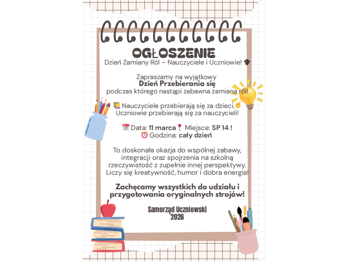 Dzień Zamiany Ról - Nauczyciele i Uczniowie! 11 marca w SP14!