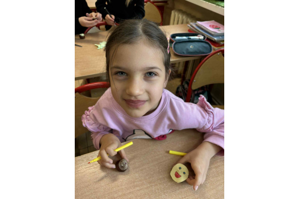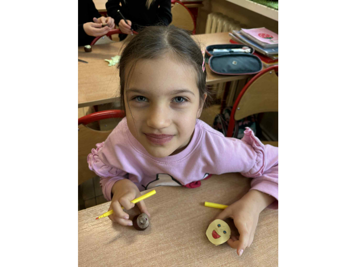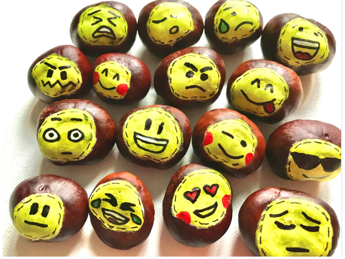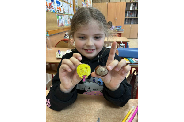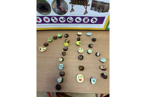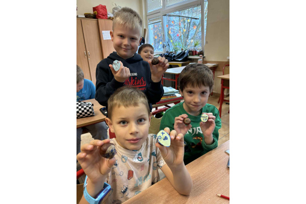 Część uczniów z klas 1-3 przygotowała EmoKasztany - kasztany z narysowanymi sympatycznymi emotkami i wymieniały się między sobą oraz między innymi klasami.