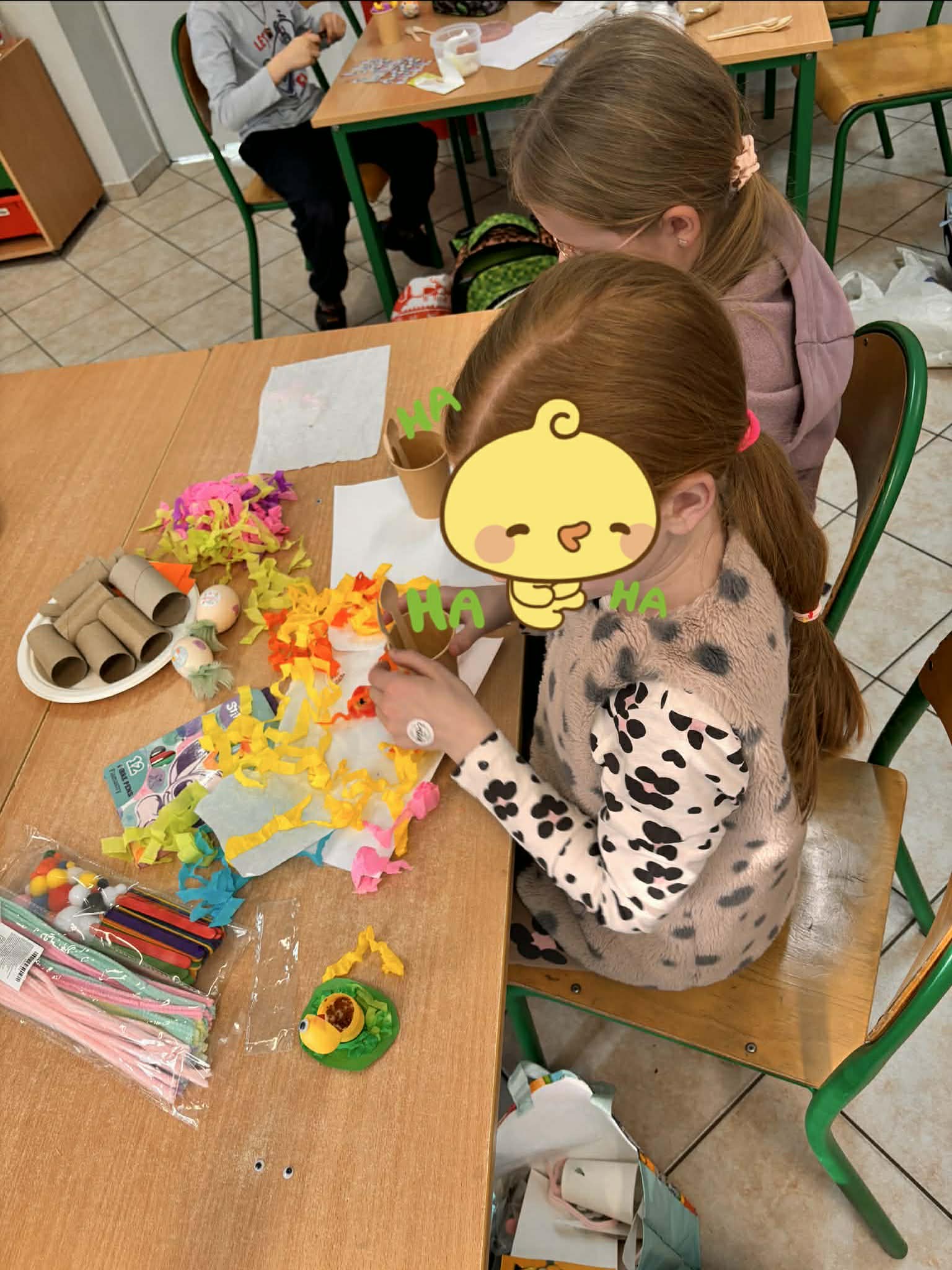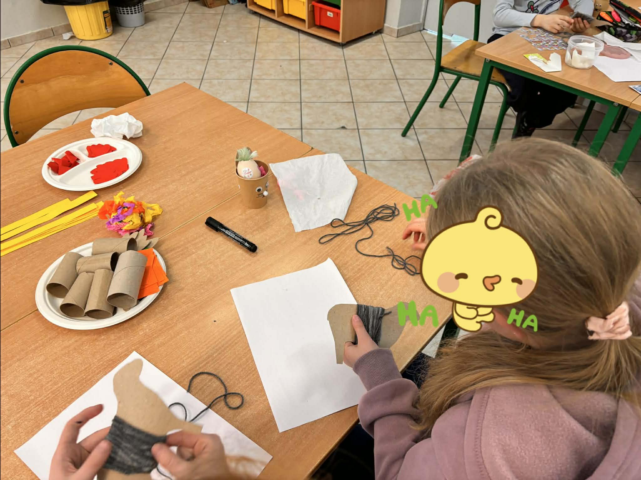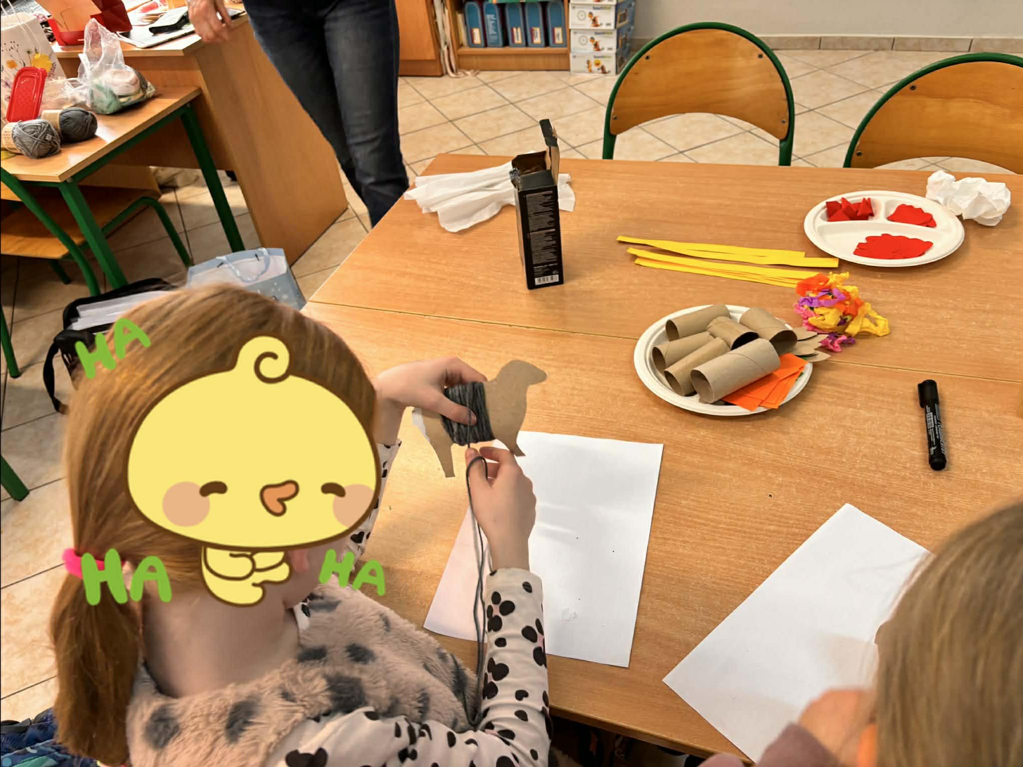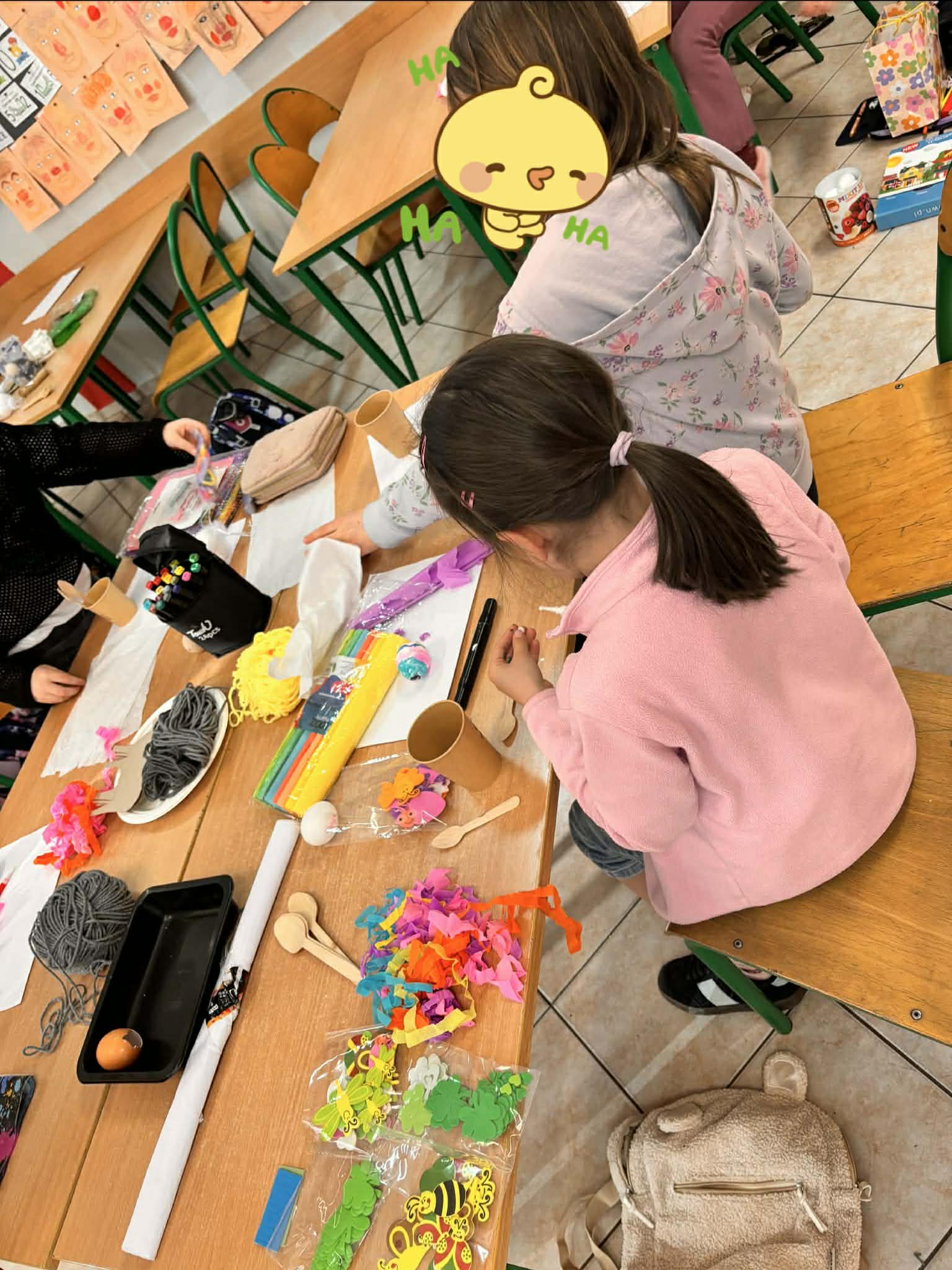 Mali artyści z wielkim zapałem zabrali się do pracy, zamieniając sale lekcyjne w prawdziwe pracownie dekoratorskie. Podczas spotkania dzieci miały okazję: