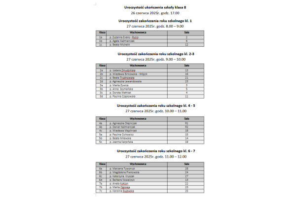 że spotkanie organizacyjne dla rodziców dzieci zapisanych do pierwszej klasy na rok szkolny 2025/2026 odbędzie się w dniu 25.08.2025 r. o godz. 16 °°