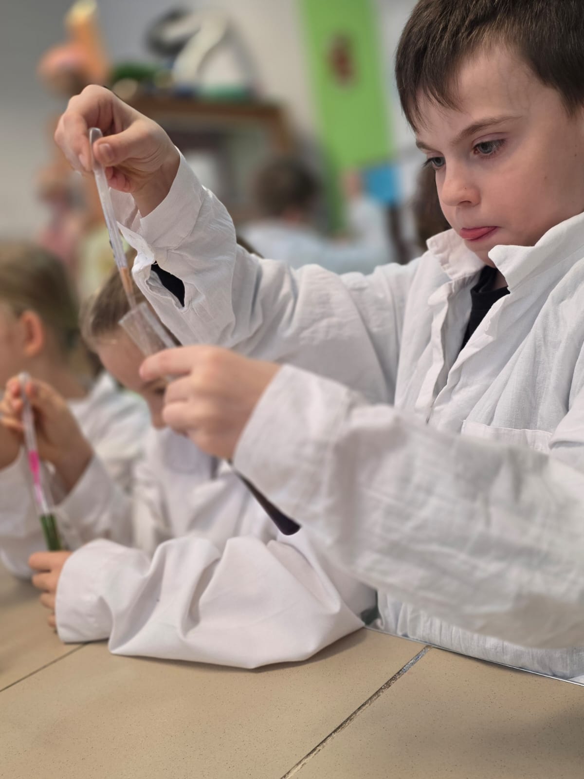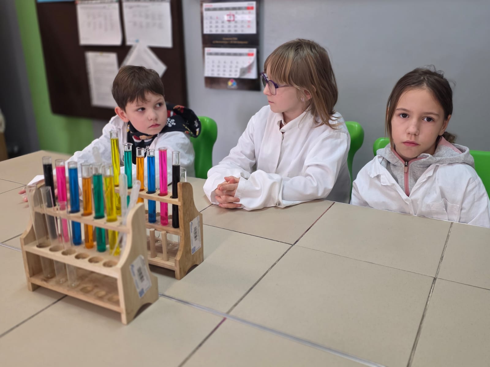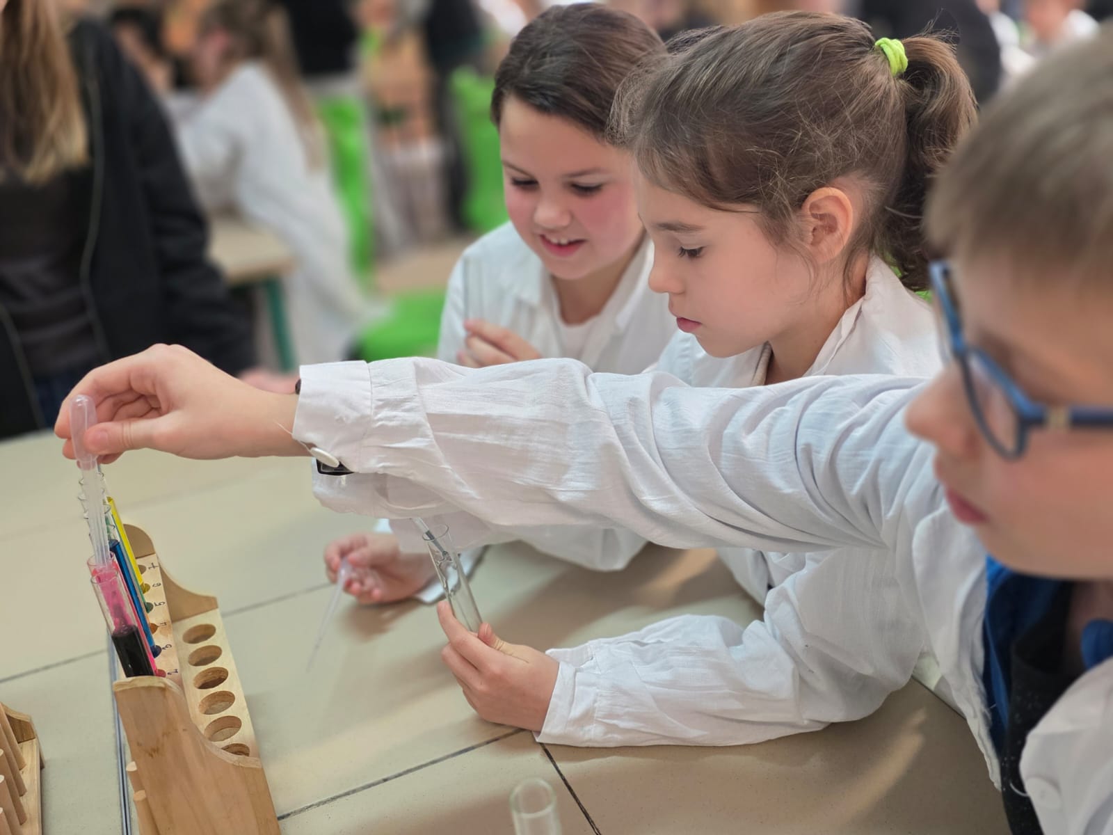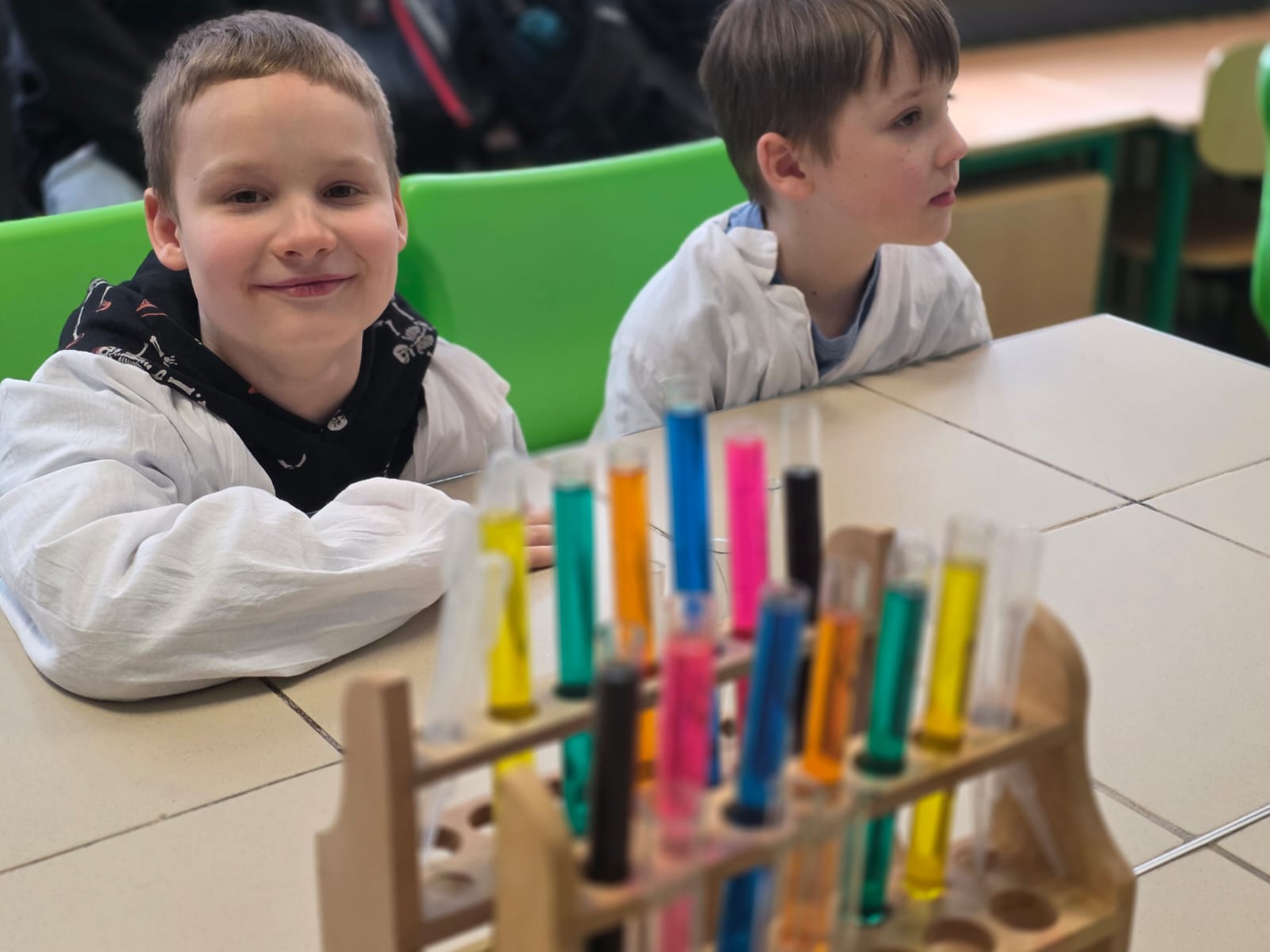 - 13 stycznia 2026 r. – Dzień Chemii: Drugoklasiści poznali technikę chromatografii bibułowej, dzięki której dowiedzieli się, jak rozdzielać składniki tuszu na poszczególne barwy. Mali naukowcy skupili się również na zjawisku gęstości substancji, tworząc zjawiskową tęczę w probówkach. Największy zachwyt wywołały jednak „świetlne fajerwerki” – widowiskowe pokazy spalania magnezu oraz pyłu żelazowego.