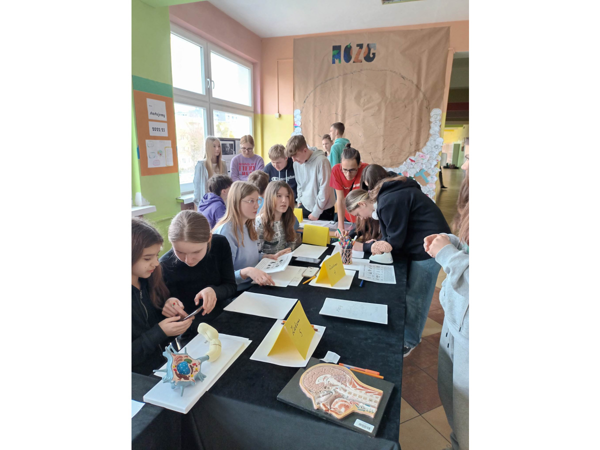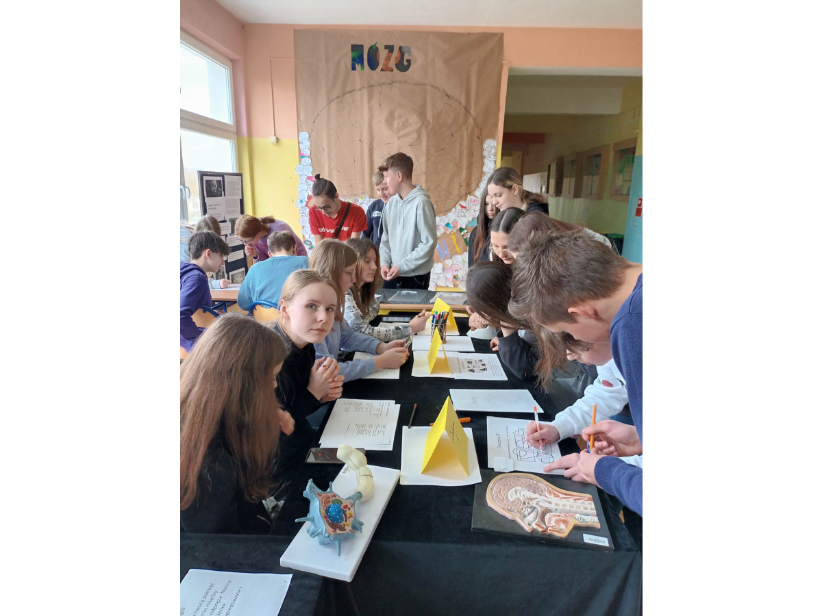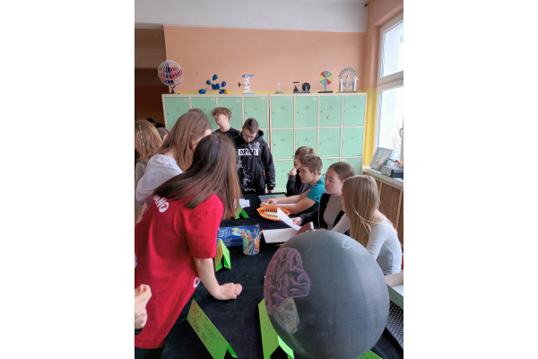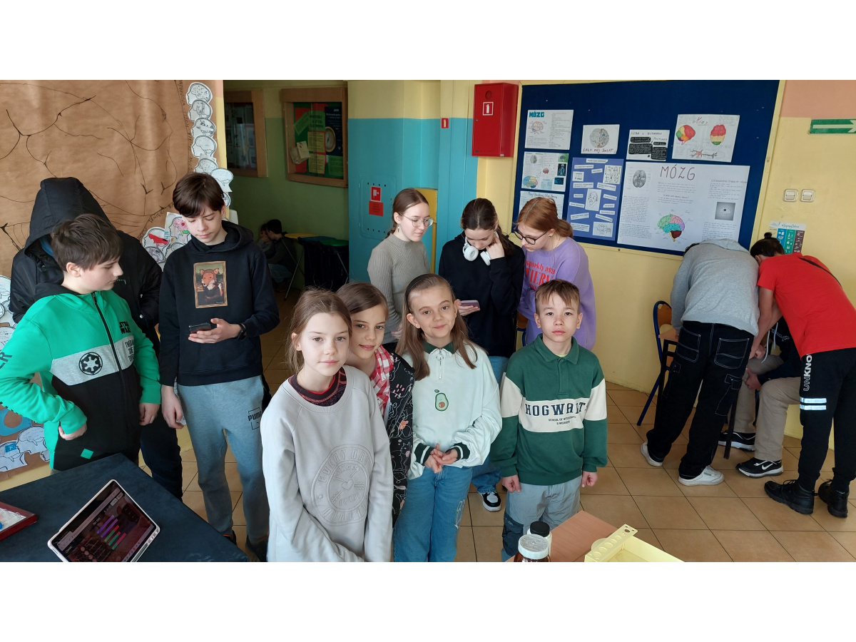 Uczniowie kl.7-8 uczestniczyli w festiwalu wiedzy nauk przyrodniczych , rozwiązując zadania m.in. na spostrzegawczość , zapamiętywanie , rozwiązywali zagadki logiczne tematycznie związane m.in z budową, funkcjami układu nerwowego oraz dotyczących zjawisk fizyko-chemicznych zachodzacych w przyrodzie. W między klasowej rywalizacji najlepszy wynik uzyskała 8a, zaraz za nią była klasa 8b, a trzecią na podium była klasa 8c. Czwarte miejsce zajęły klasa 7a i 8d.
