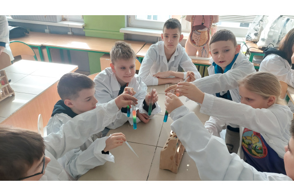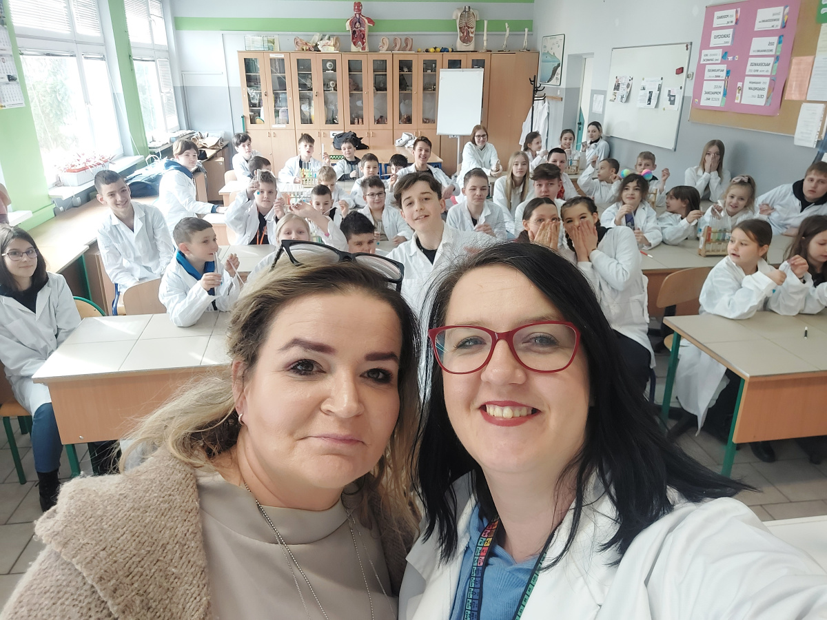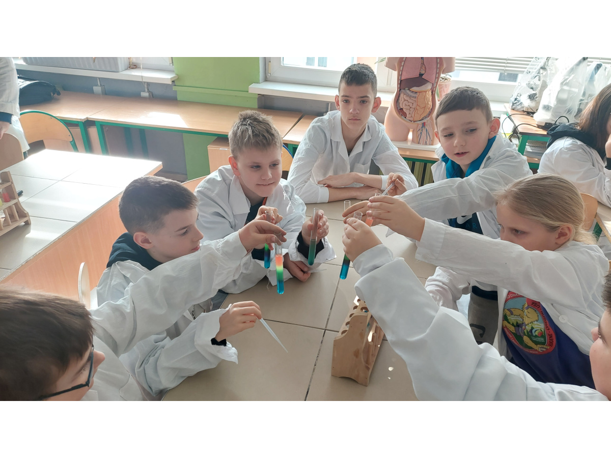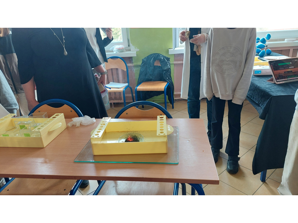 Dla klas 1-3 odbyły się warsztaty z eksperymentów prowadzone przez nauczyciela fizyki p. Anetę Kołcon i nauczyciela chemii p. Joannę Karpińską.