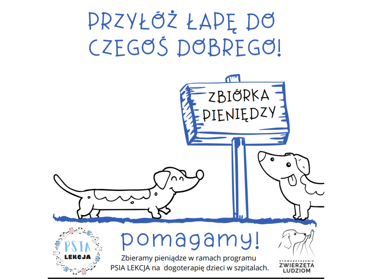 Zbiórka realizowana jest w ramach programu „Psia lekcja” prowadzonego przez Stowarzyszenie Zwierzęta Ludziom. Dzięki niej dzieci przebywające na oddziałach szpitalnych mogą doświadczać wsparcia, radości i rozwoju poprzez kontakt z odpowiednio przygotowanymi psami terapeutycznymi.
