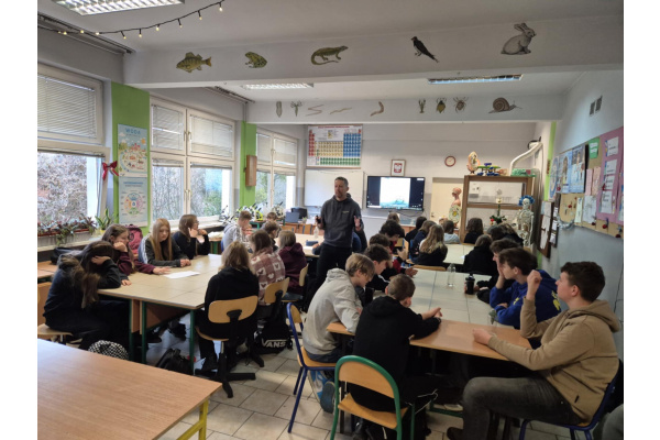 W dniach 12–19 marca 2026 r. w naszej szkole odbył się Tydzień Profilaktyki pod hasłem „Małe nawyki, silna psychika”. W ramach wydarzenia zrealizowano szereg działań skierowanych do uczniów różnych klas, mających na celu wzmacnianie zdrowia psychicznego, rozwijanie kompetencji społecznych oraz promowanie bezpiecznych i odpowiedzialnych postaw. W trakcie tygodnia odbyły się spotkania z Policją dla uczniów klas 4, 7 i 8, a także spotkania ze Strażą Miejską dla najmłodszych uczniów klas 1–3. Uczniowie klas 7 uczestniczyli w warsztatach pt. „Pogadać po ludzku o podejmowaniu decyzji”, podczas których rozwijali umiejętności dokonywania świadomych wyborów. Zrealizowano również działania pod hasłem „Sztuka jako oddech” – warsztaty wspierające dobrostan psychiczny uczniów klas 4–7, prowadzone podczas lekcji plastyki. W tym czasie odbył się także konkurs plastyczny na plakat związany z hasłem przewodnim tygodnia. Wśród działań profilaktycznych znalazło się także rozpoczęcie programu „Domowi Detektywi – Jaś i Małgosia na tropie” w klasach 5 oraz kontynuacja programu „Apteczka Pierwszej Pomocy Emocjonalnej” w klasach 4. Wychowawcy otrzymali również propozycje scenariuszy zajęć do realizacji podczas godzin wychowawczych. Do udziału w działaniach zaproszeni zostali także rodzice, którym zaproponowano webinar pt. „Cyfrowy dobrostan – jak wspierać dzieci i chronić przed uzależnieniem?”.