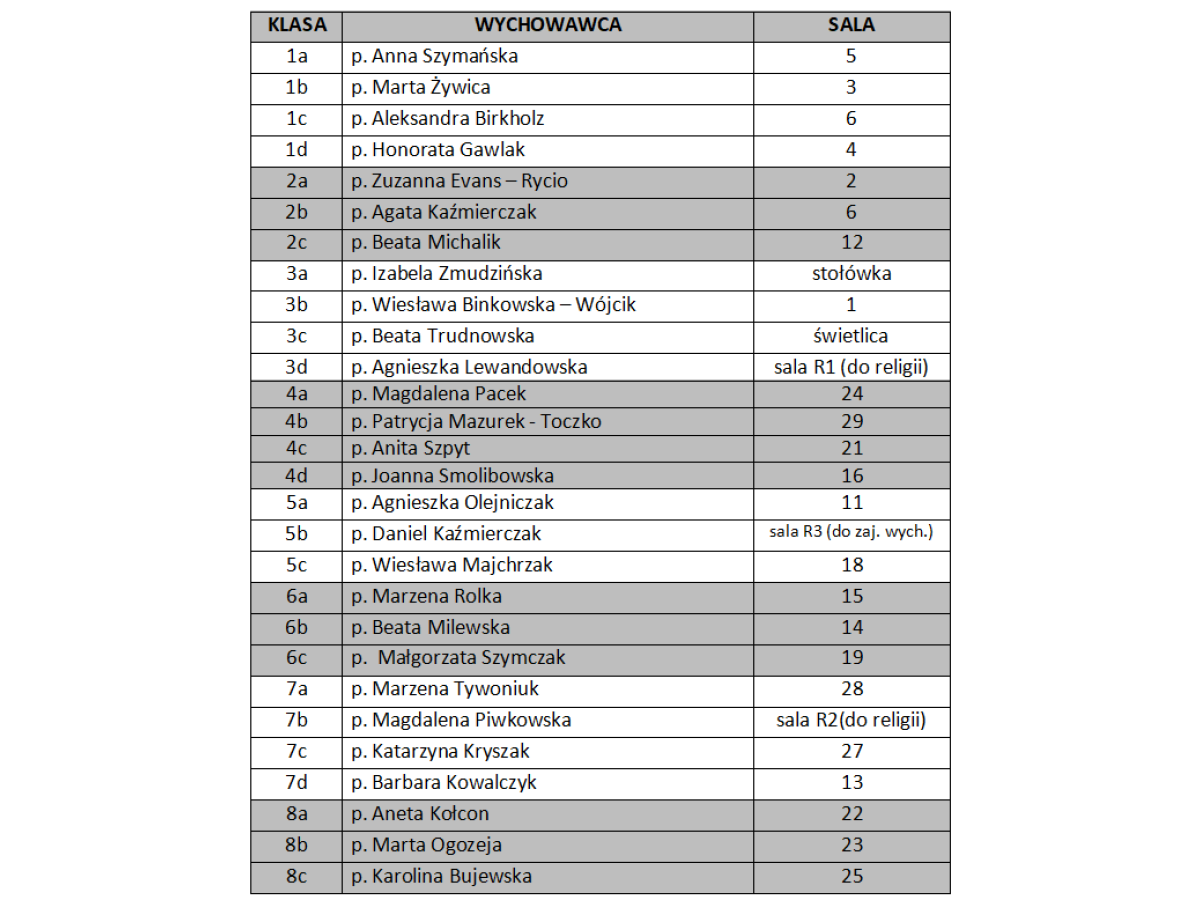 Po uroczystości uczniowie spotykają się z wychowawcami do godz. 10.30 w następujących salach: